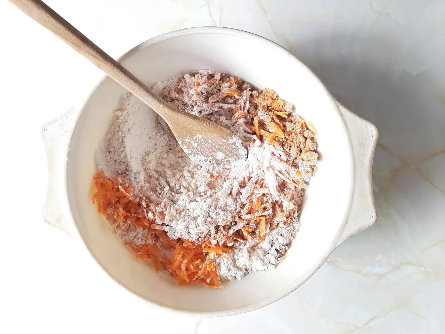 Peel and grate the carrots and add it all (about 1 whole cup) to the bowl with the grated orange zest.