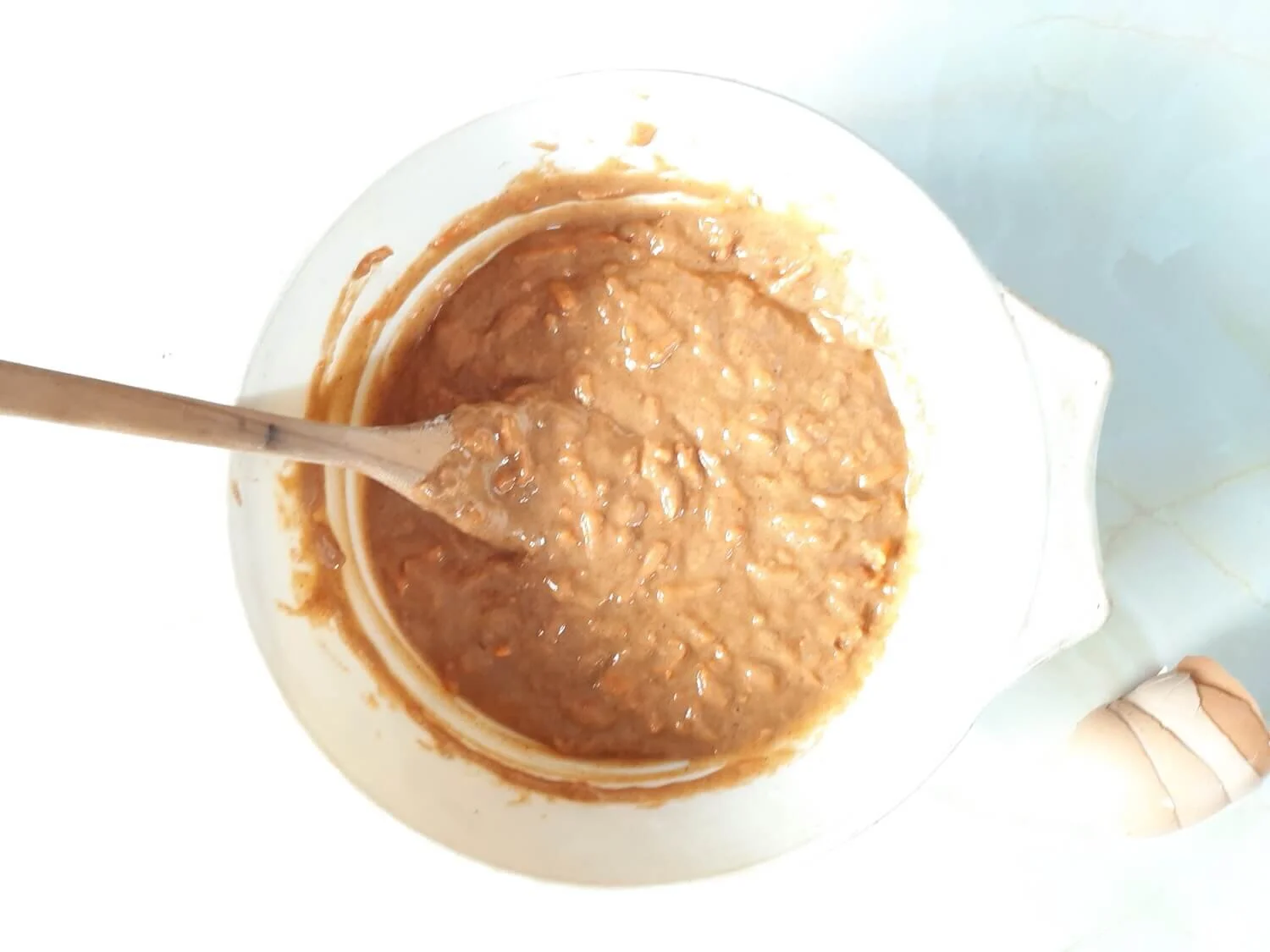 Add the eggs to the bowl and mix until a thick batter forms, then spoon the carrot cake batter into the greased or lined muffin trays.
