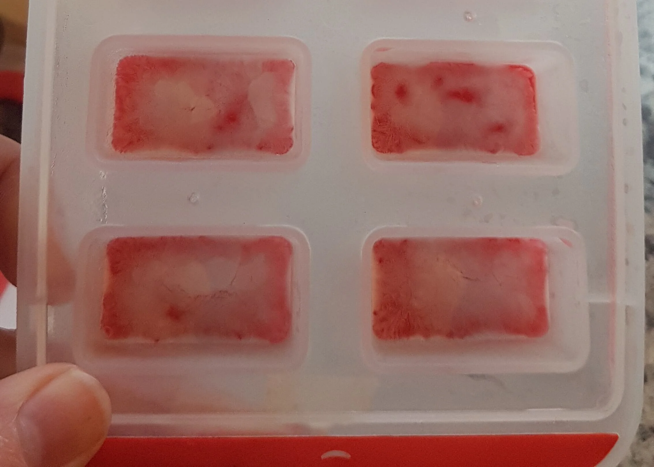 4. Carefully fill your ice cube trays to 1/3 full and place in the freezer for 15 minutes.