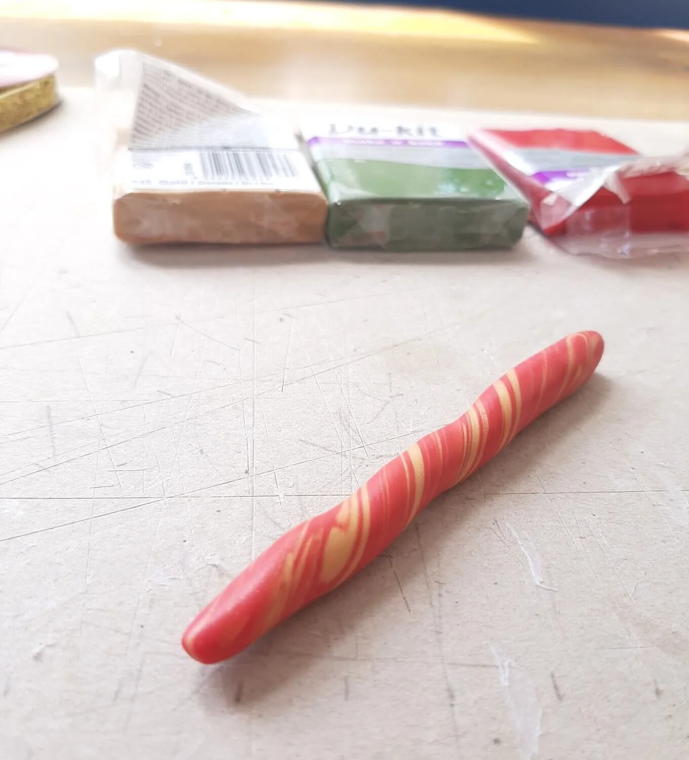 Tip: Rolling a “sausage” of each colour together can be a great way to achieve this.