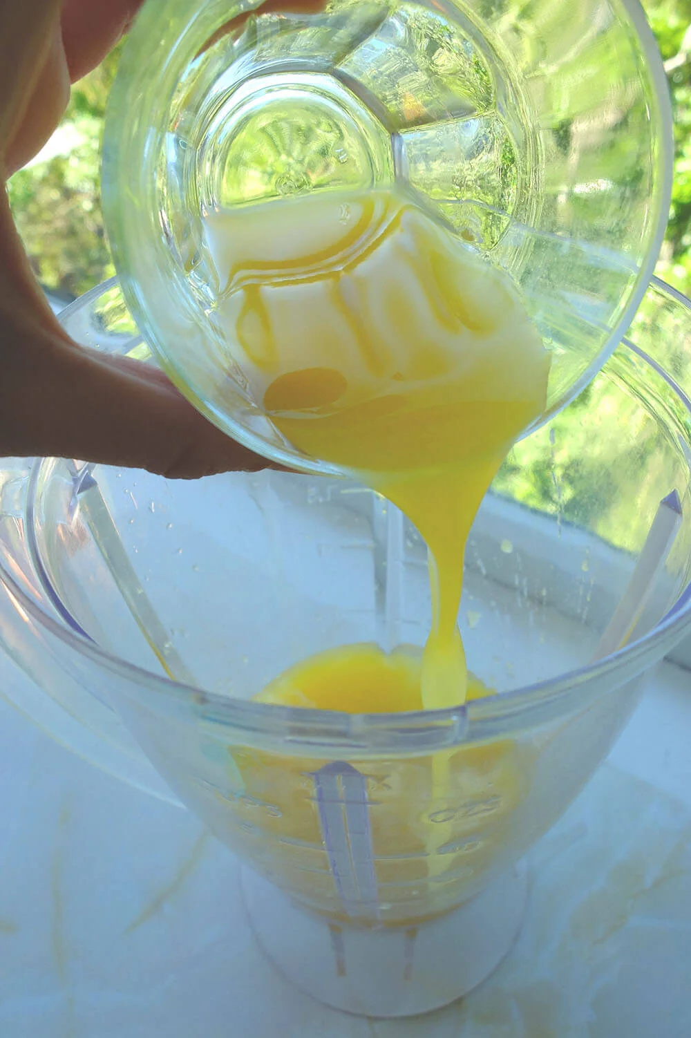 Now slow down and relax pouring the Pine-orango mixture very slowly and carefully into the moulds.