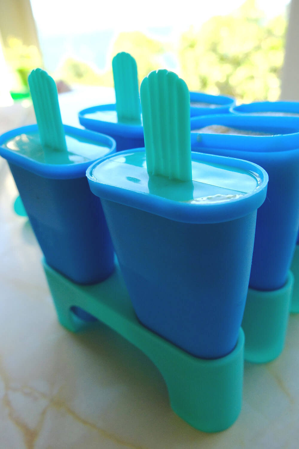 Fill ¾ of the popsicle moulds with your coco-nana mix.