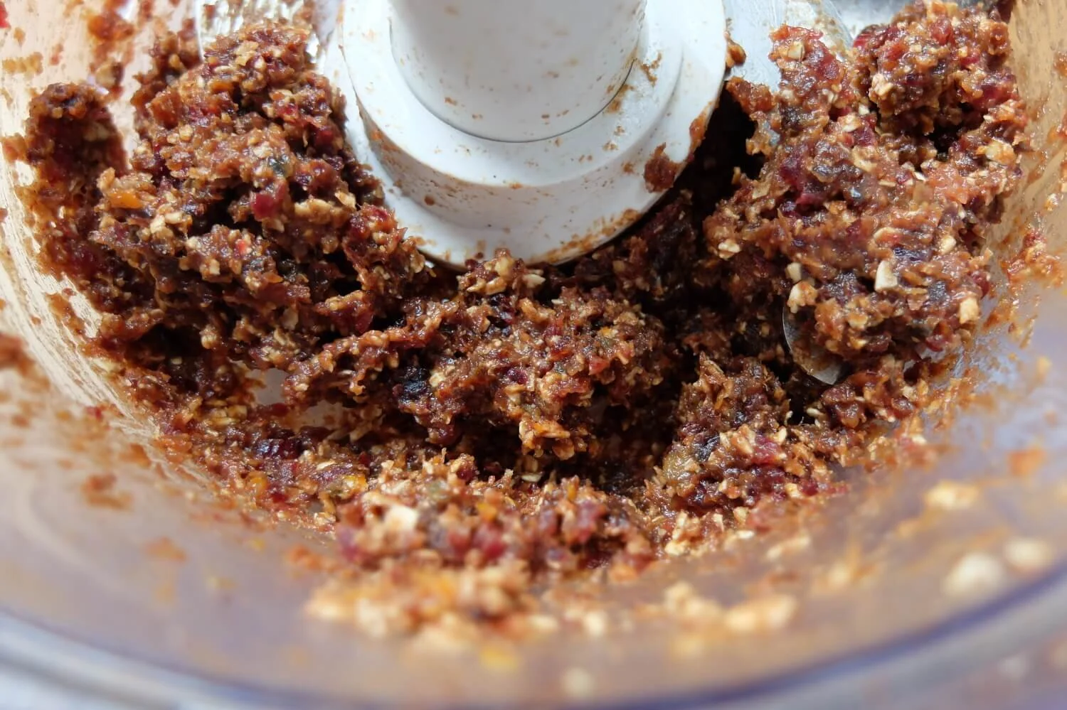 3. Pulse the ingredients and occasionally stop to scrape the mix off the sides of the bowl
