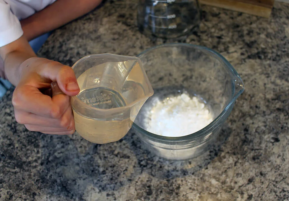 Quarter fill your container with water and stir to mix the baking soda and water.