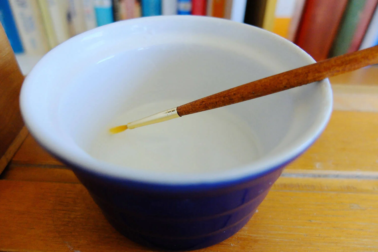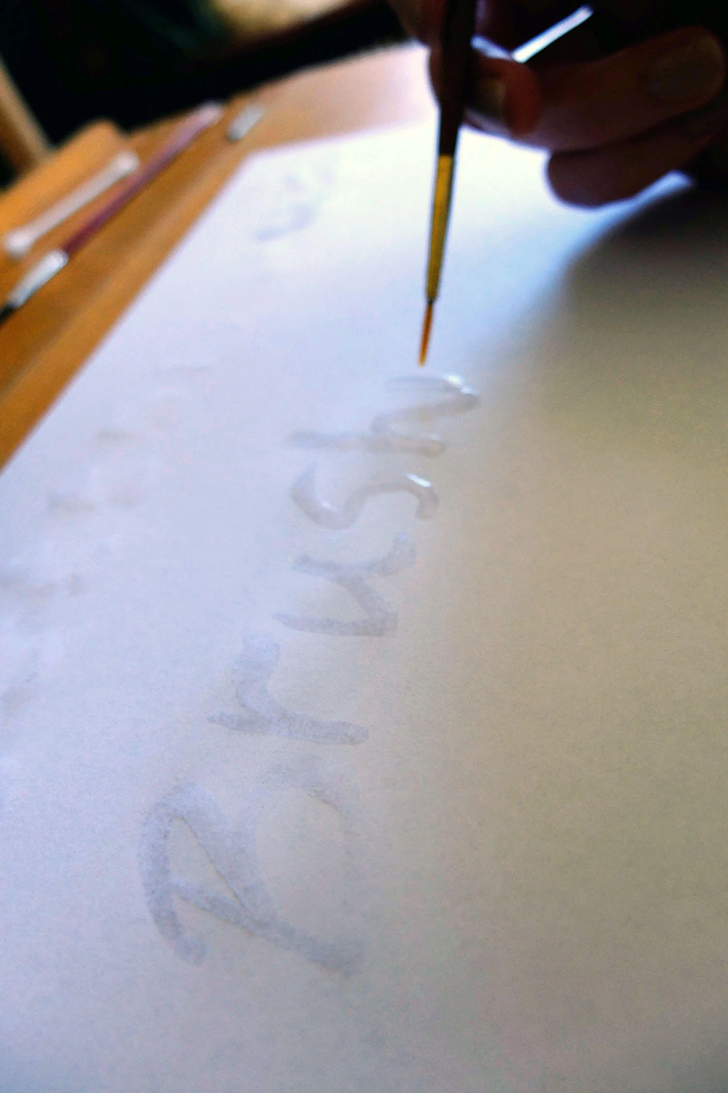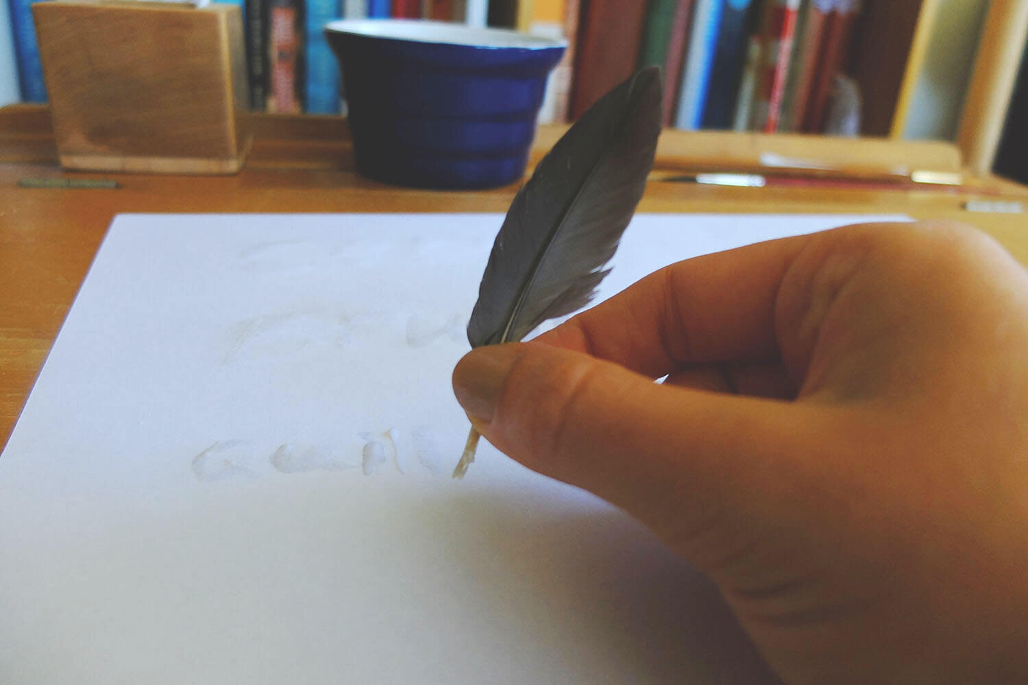 We tried a cotton bud, a thin paintbrush and a feather which we fashioned into a (not very good) quill.