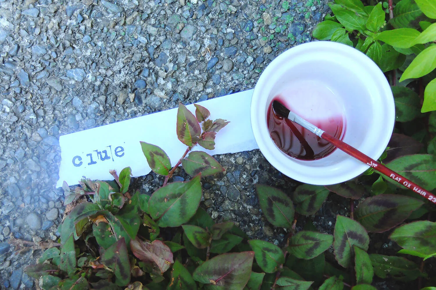 This could be a paintbrush, cotton bud or quillPurple grape juice