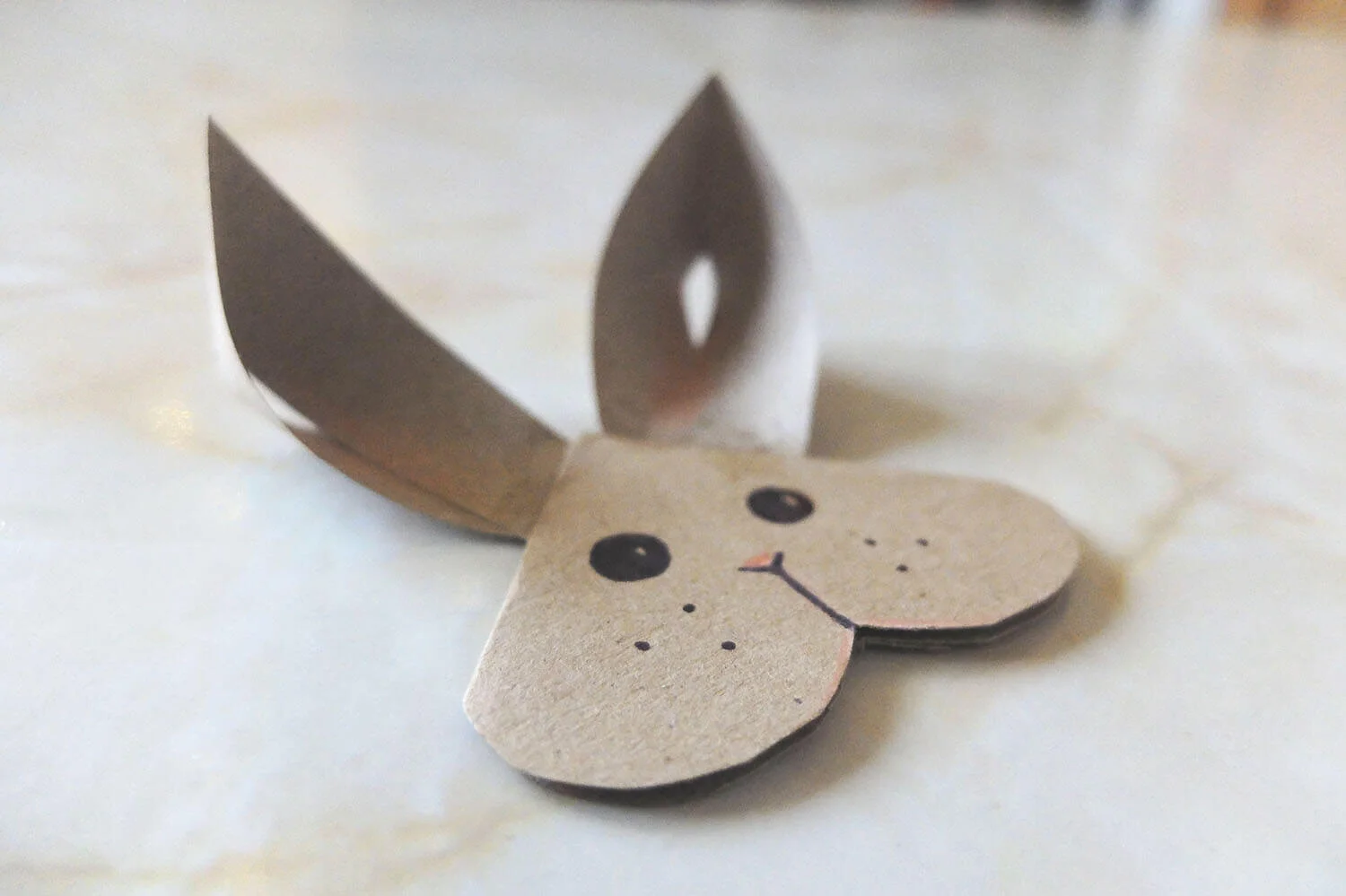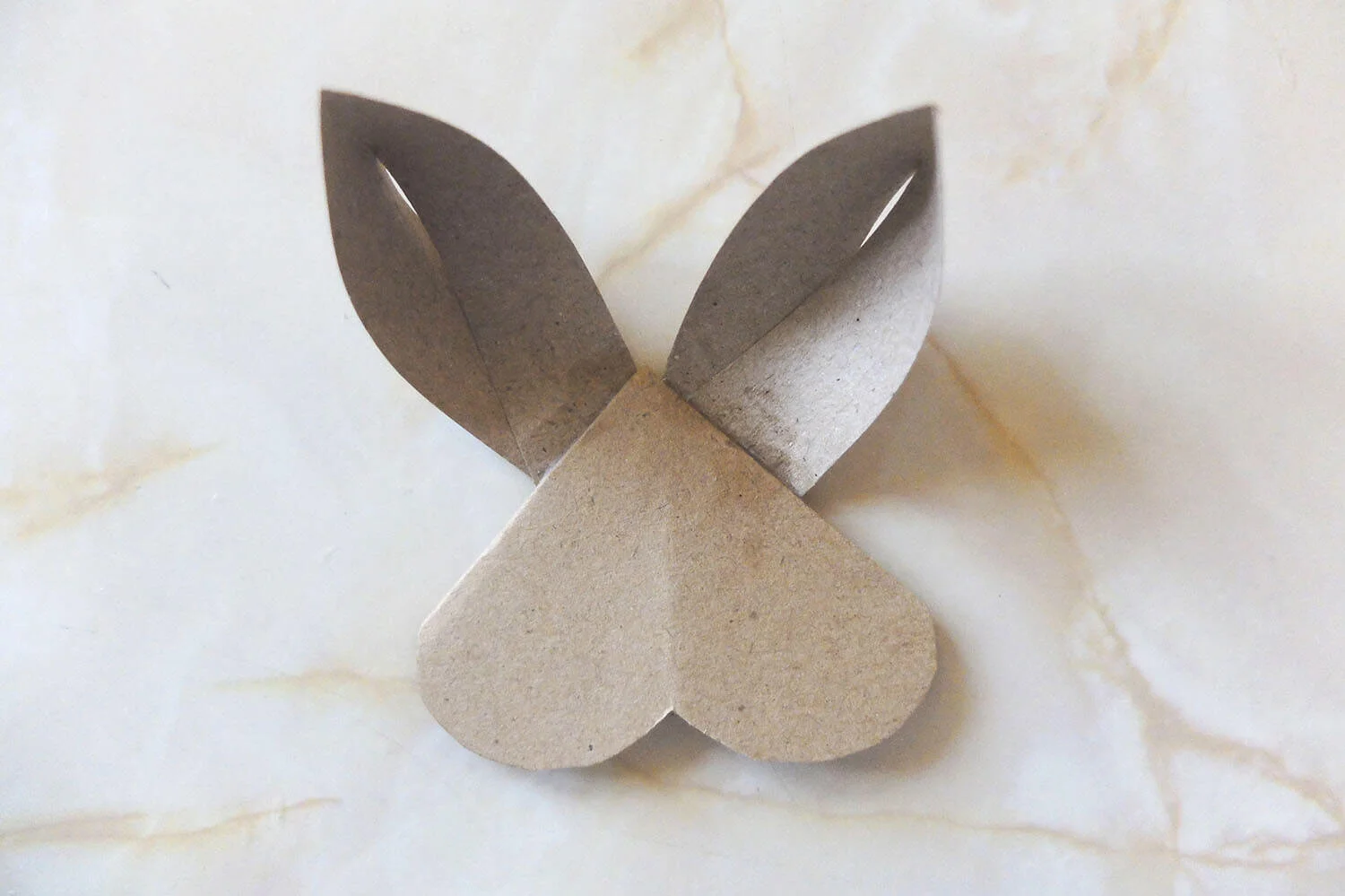 When you open up one of the pieces it will make an upside-down ‘V’ shape. Overlap the two loose ends with each other and stick them in place to make an ear.