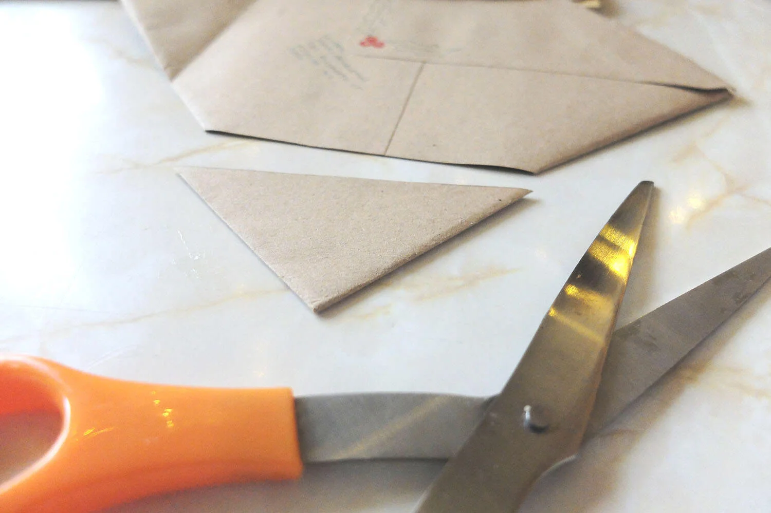 Use a ruler to draw a line across the bottom corner of the envelope. Make sure your triangle is the same length on the two opposite sides. (Double check it will fit your book page before you cut it out).