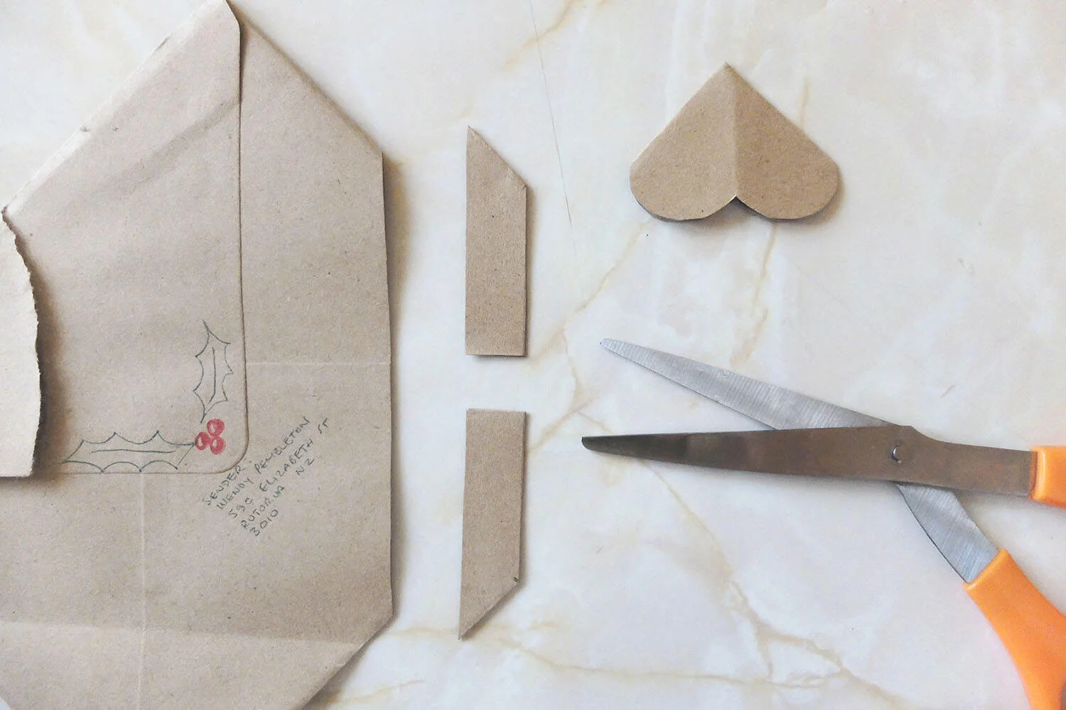 Using your ruler draw a line on your envelope just above where you cut out the triangle. It should run parallel with the diagonal bottom edge. Cut along you pencil drawn line.