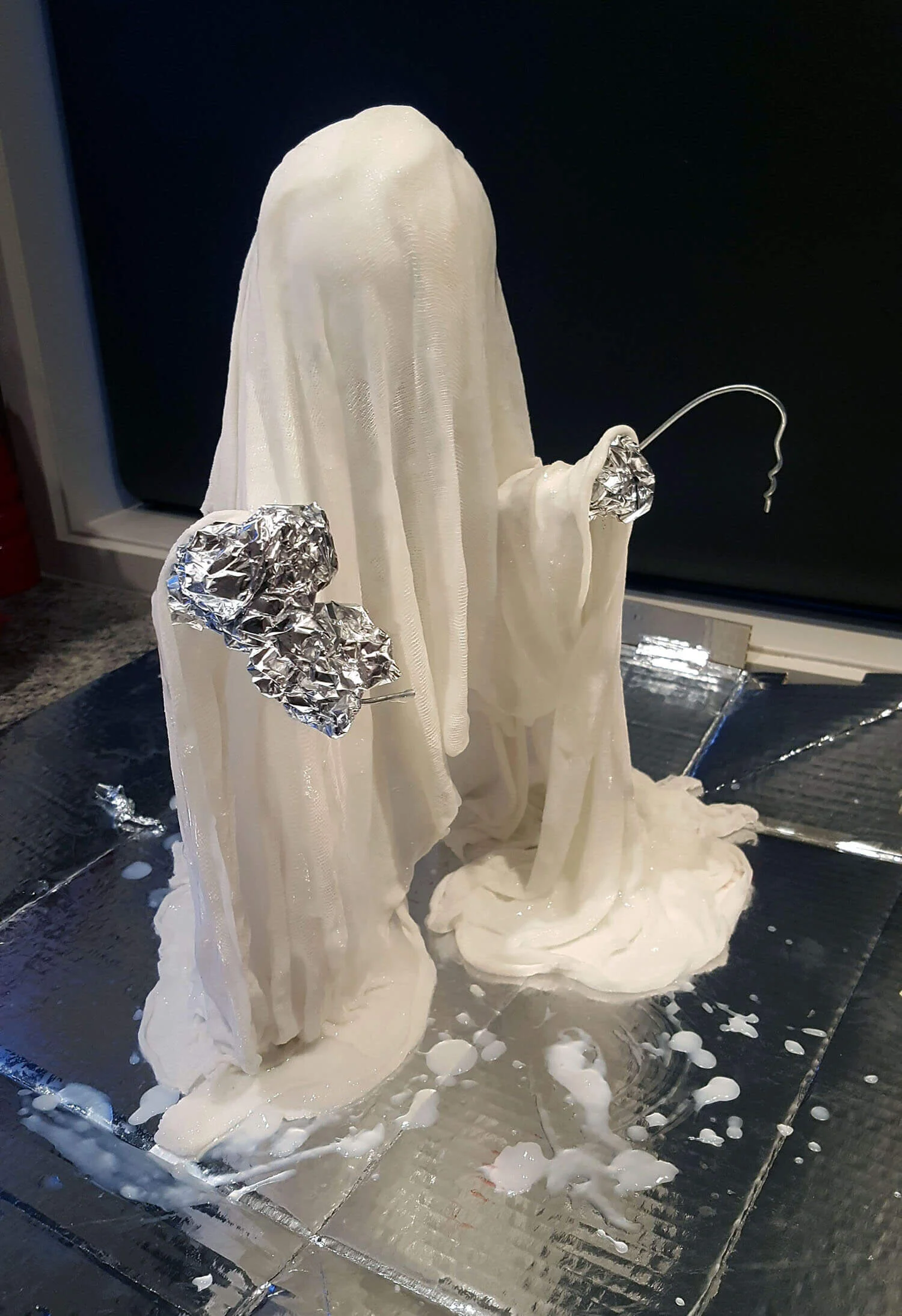 When the glue hardens it’s this cloth base that will hold your ghost up, and make the rest look as if it levitates.