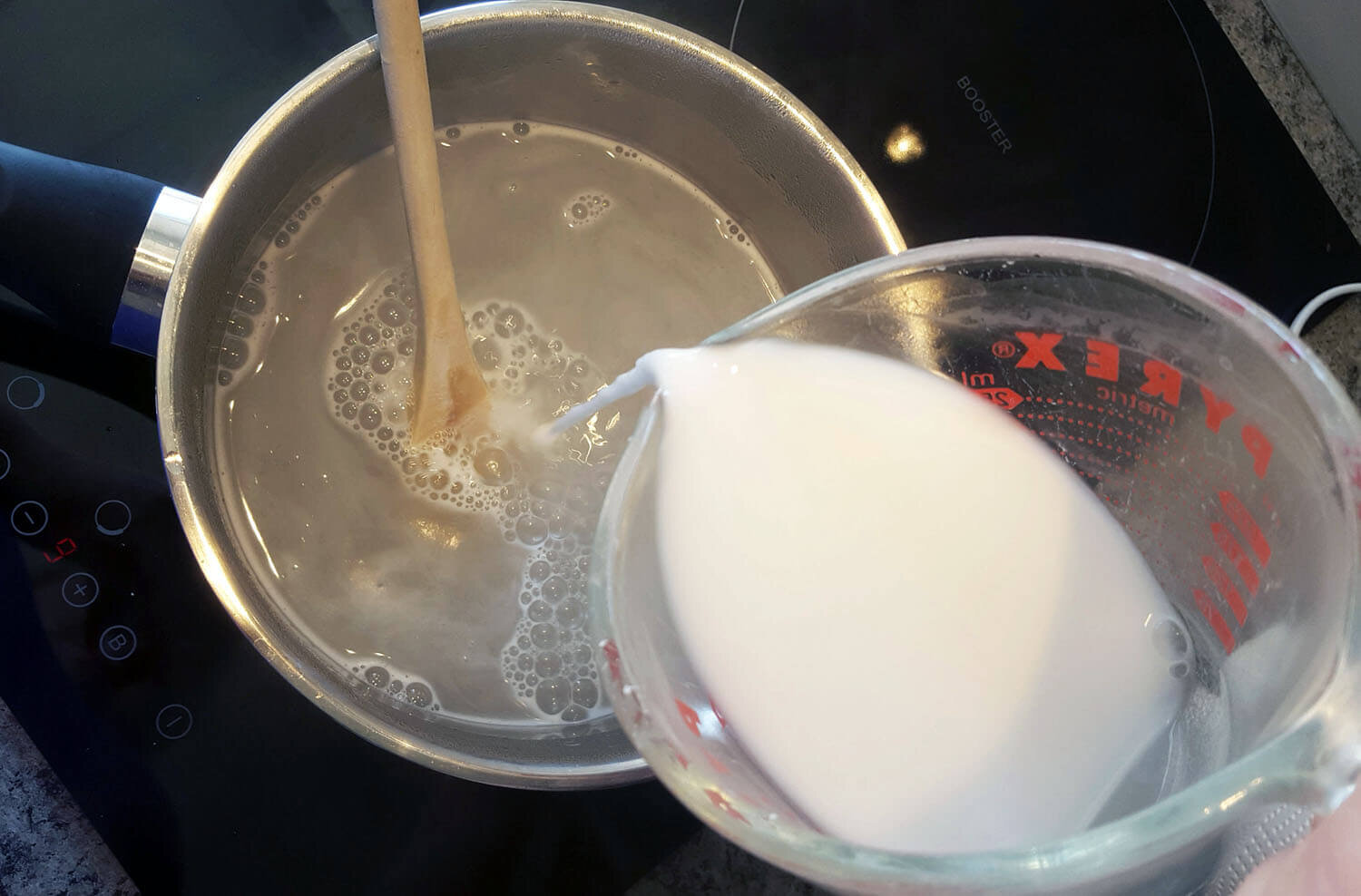 5. Once thickened, remove from the heat and allow the glue to cool.