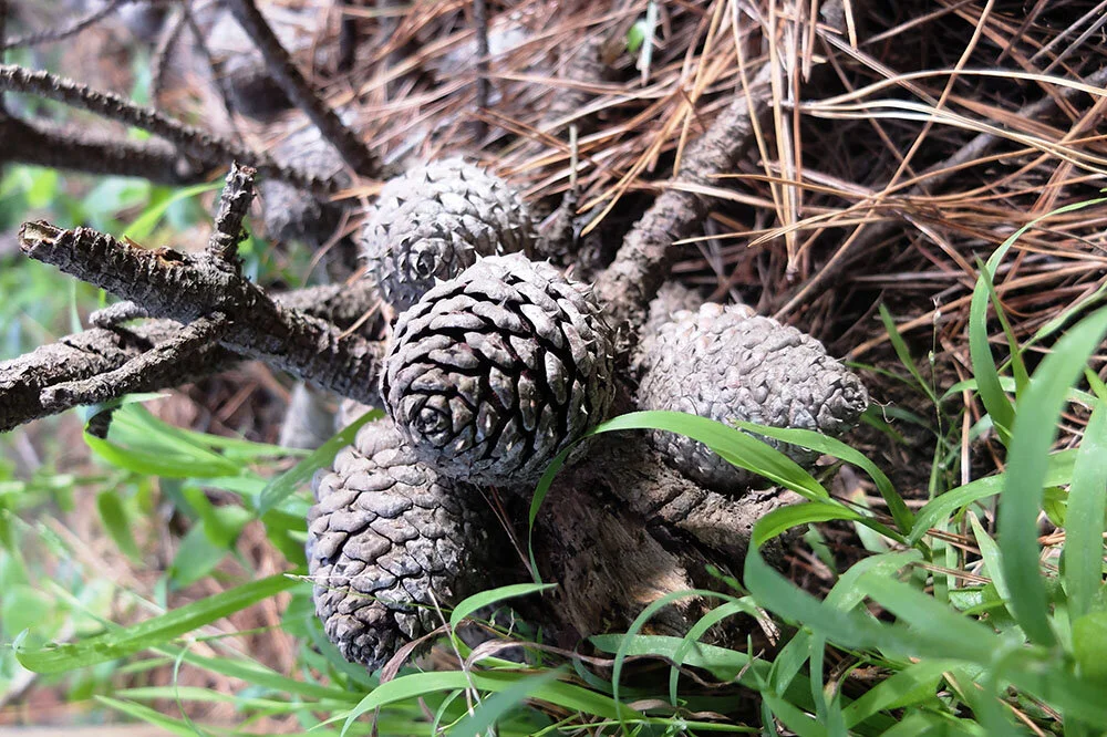 If all the pinecones you find are closed get an adult to help you open them by drying them out in the oven or just near a heater or fire. It’s important not to let them get too hot because this can cause a fire.Cut a long piece so that you have enough string to tie it to the tree. Cut about 60 cm to start with.