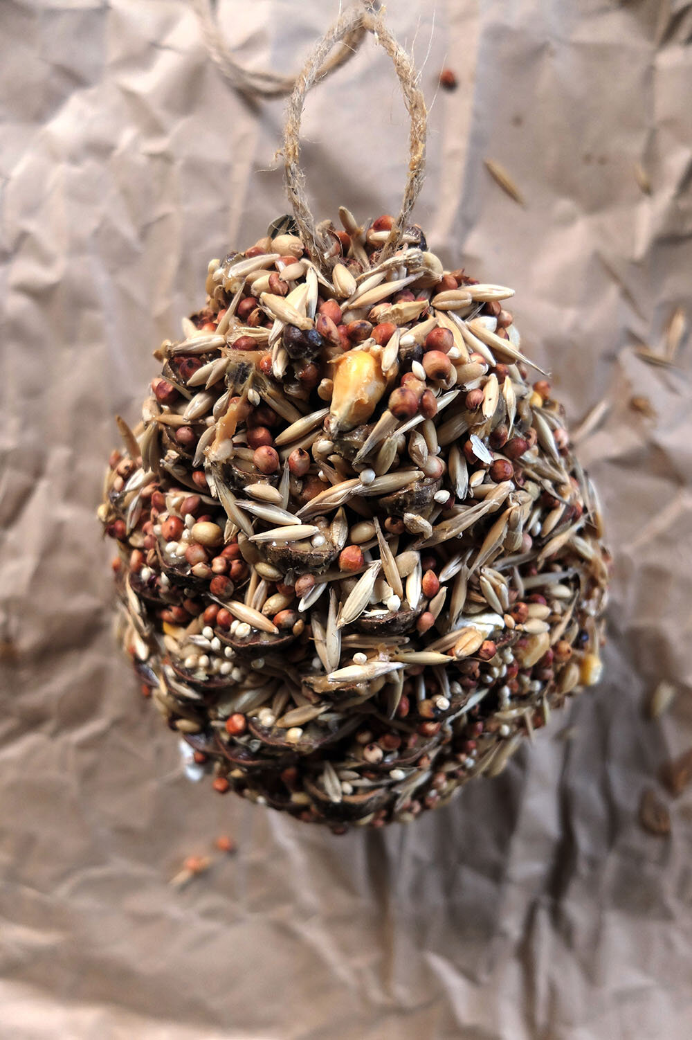 Roll the rest of the pine cone in the seeds. If the top needs more seeds just use your hands to squash more seeds onto the top and into any gaps.