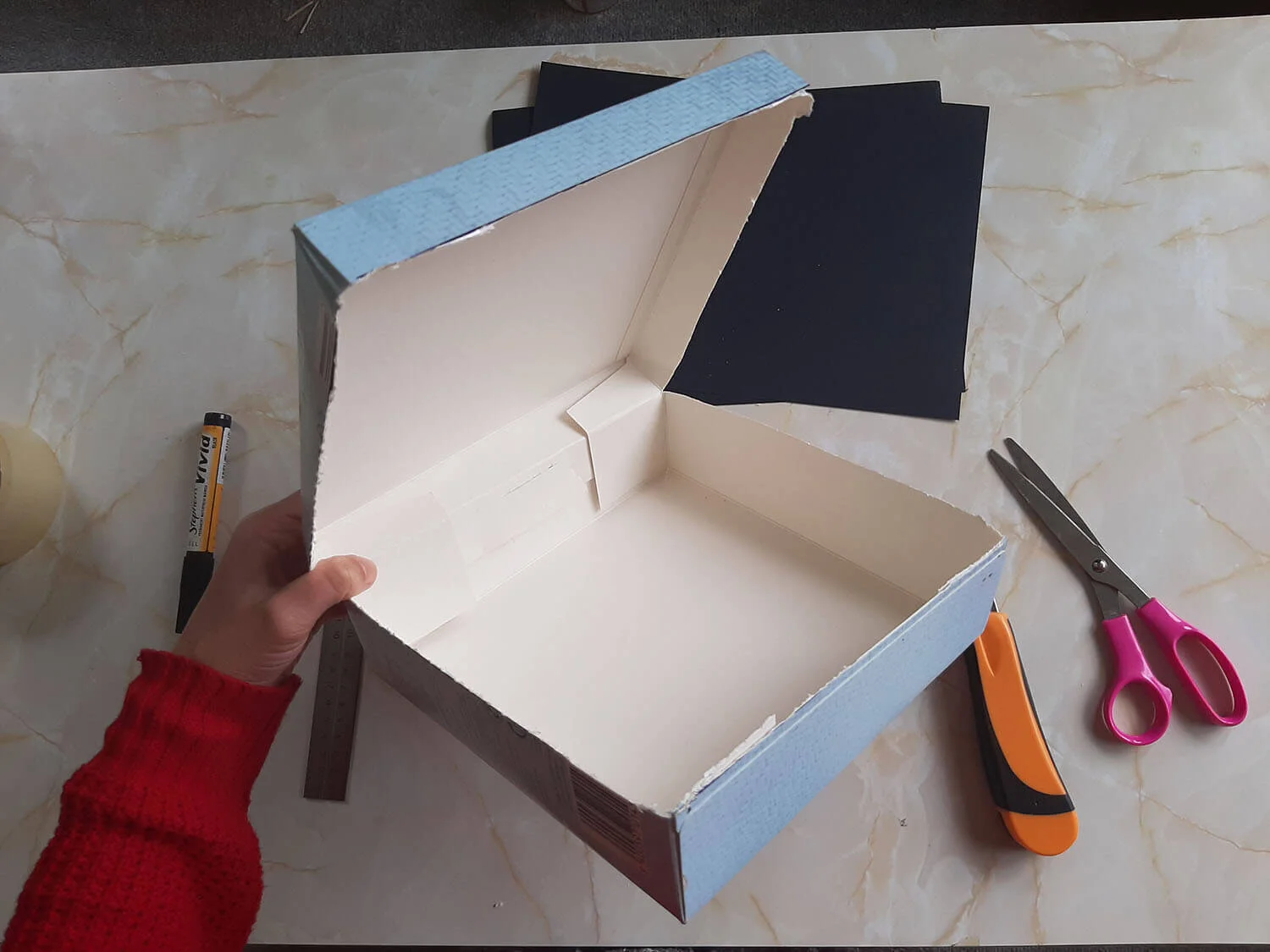 An adult can then cut around the edges of the box with a craft knife to create a lid for the box.Draw a square on top of the lid with a frame about the thickness of your ruler. An adult can help you to cut out three of the sides to create a flap.