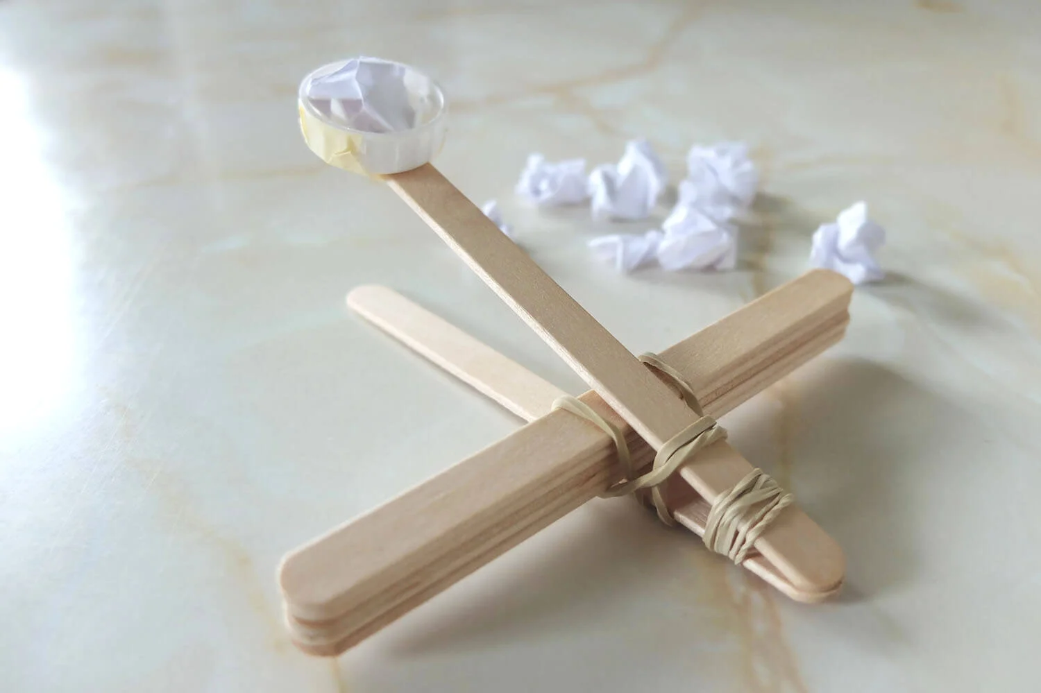 Have fun launching paper balls with a quick and easy homemade catapult!