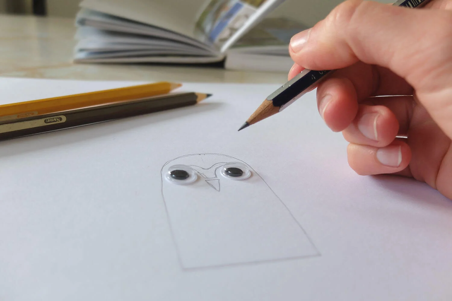1. Draw the finger puppet outline; this should be at least 4cm wide and 6cm tall.