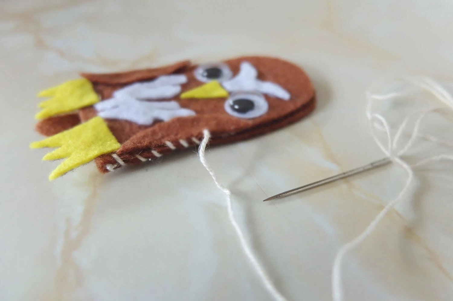 Tip: To make sure it’s the right size, hold your finger up to your outline - there should be enough space on your puppet shape so that it will still fit around your finger after you have sewn the edges down.