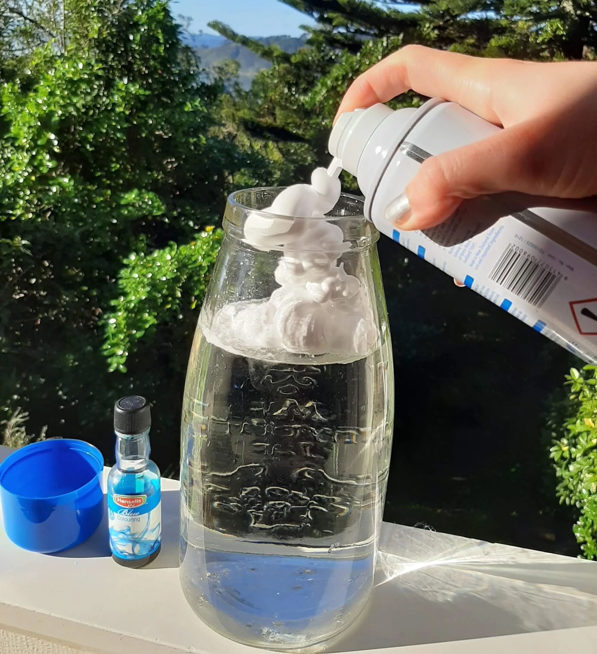 Squirt some shaving foam on top to create your big fluffy cloud