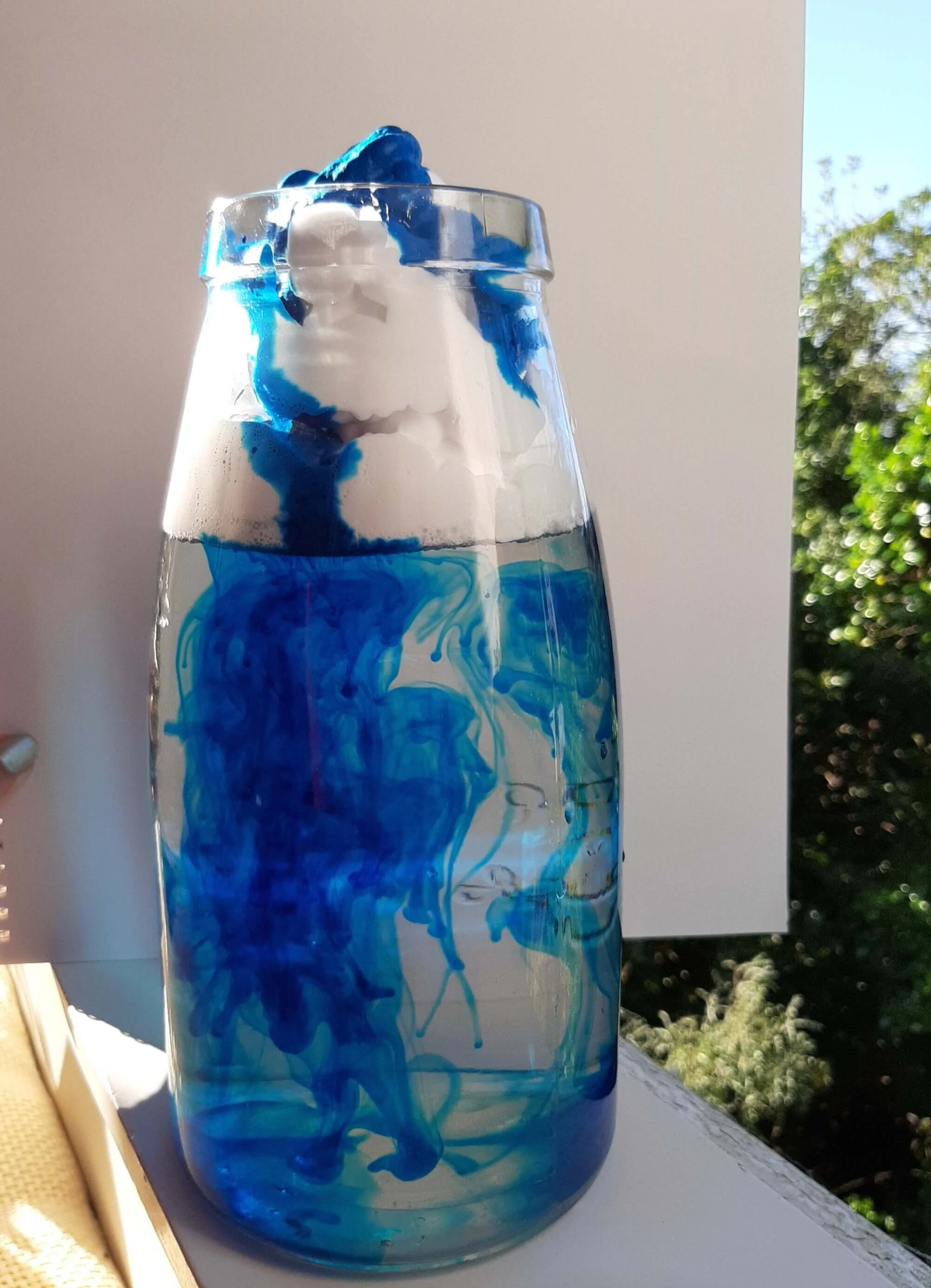 With a foam cloud, blue rain and a jar you can discover how rain is formed.