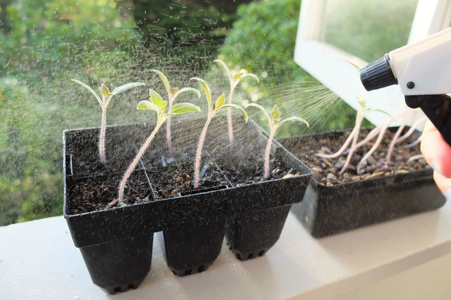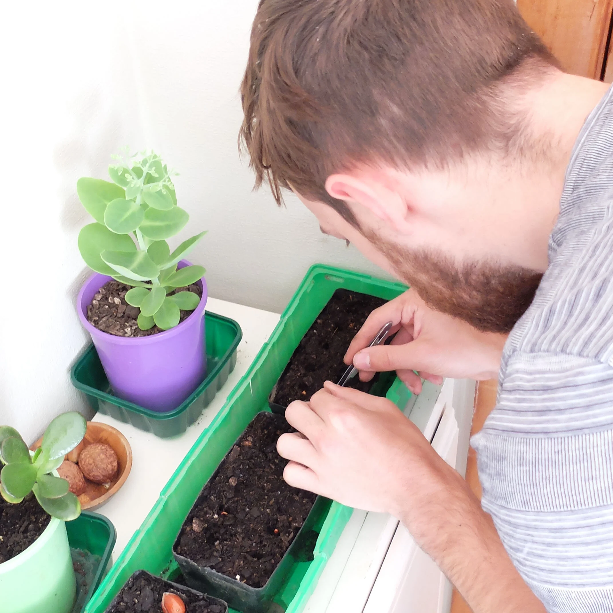 Push a seed into each pot until they are just covered with soil (about 5 mm deep). The seeds are very small, so using tweezers can make this a bit easier.Keep your planted seeds inside and give them lots of water and light - ensuring that they don’t dry out.