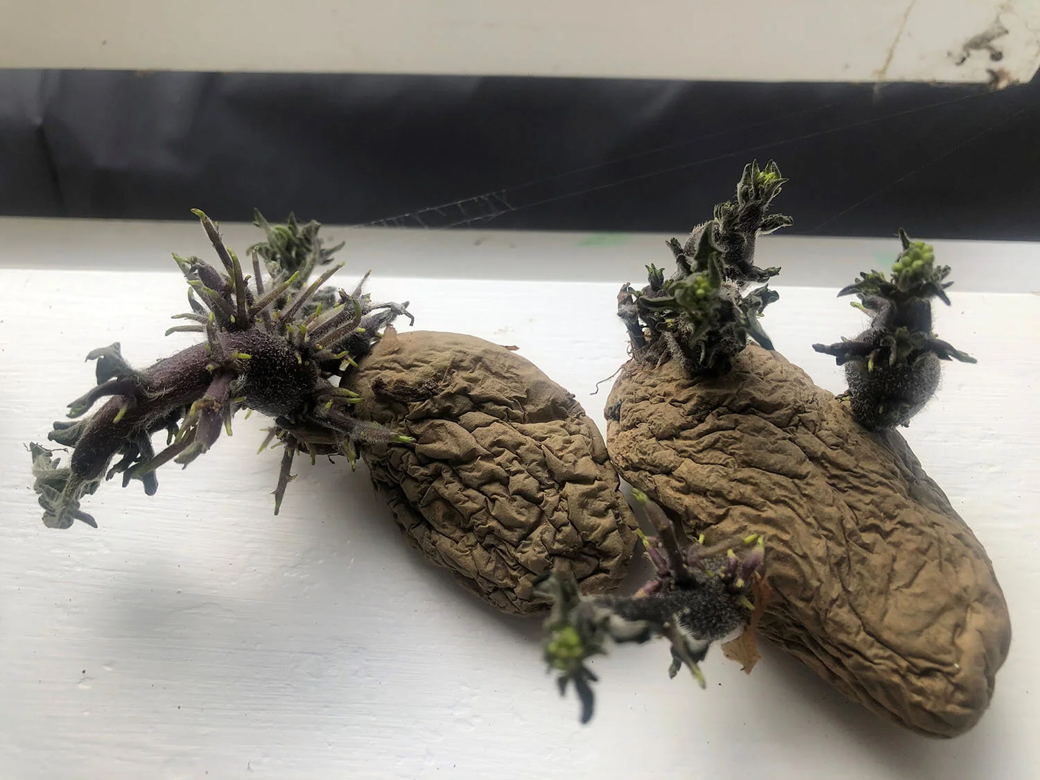They aren’t watching you though… this is the potato trying to sprout leaves so that they can get more sunlight and grow more tasty spuds.
